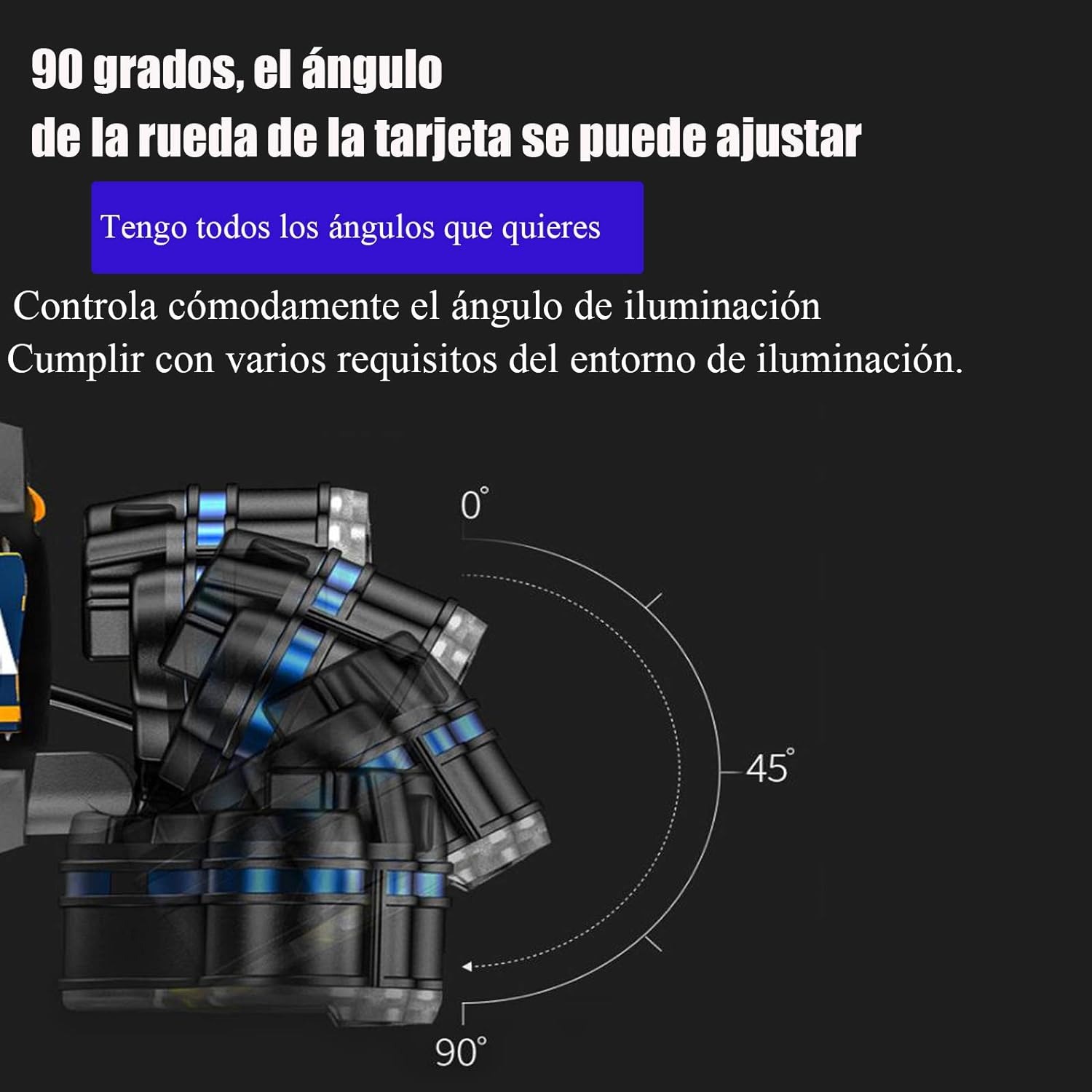 Linterna frontal LED Linterna frontal recargable, linterna LED de 8 modos con cable USB, linterna frontal LED impermeable