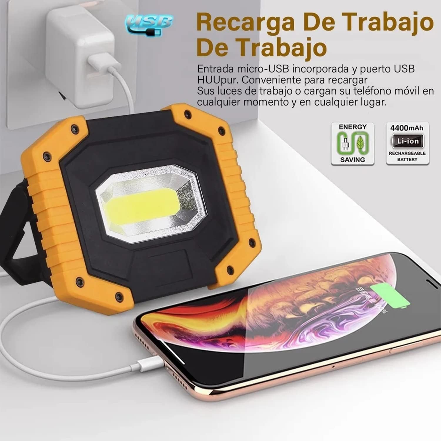 Diseño de transformador, uso multifuncional: se puede encender tres veces como lámpara de carpintería; puede ser una linterna con lámpara de arco. Baúl recargable y USB: batería de litio recargable interna de 2200 mAh, que se puede utilizar como batería recargable para teléfonos móviles. Se puede cargar mediante un cable USB cuando no hay energía, no se requiere batería adicional. Utilizando la última tecnología LED, equipada con una fuente de luz COB de alto brillo, sin parpadeo ni deslumbramiento, al mismo tiempo que protege los ojos. Tres tipos de luces ajustables satisfacen sus necesidades de iluminación: alta, baja y brillante. Hay ocho modos de iluminación que se pueden cambiar si enciendes diferentes luces y presionas el botón del interruptor. Diseño simple: diseño plegable, soporte de acero inoxidable, la forma se puede ajustar según sea necesario.